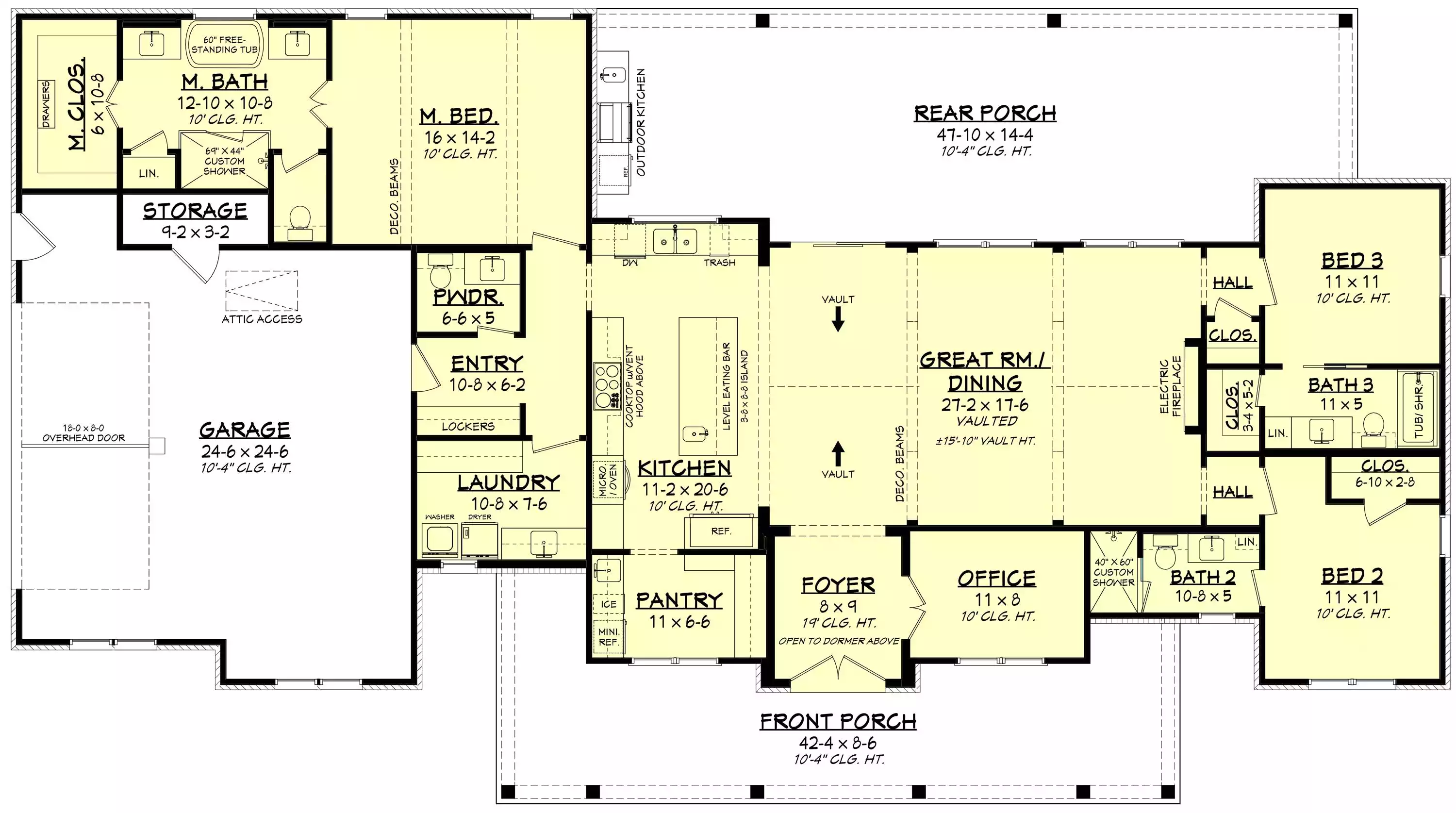 This thoughtfully designed home offers 2191 square feet of heated living space with 3 bedrooms and 3.5 baths arranged for comfort and entertaining. The open floor plan centers around a vaulted great room with fireplace, creating a bright and inviting focal point for everyday living. The L-shaped kitchen features a large island, peninsula eating bar, and butler’s pantry to provide generous workspace and storage. A main-level primary suite offers a peaceful retreat with a walk-in closet and a private bath complete with double vanity, separate tub, and shower. Split bedrooms enhance privacy while keeping the layout functional and connected. A dedicated home office, mud room, and first-floor laundry add convenience to daily routines. Expansive covered front and rear porches, along with an outdoor kitchen and outdoor living space, extend the home’s comfort outdoors and make it ideal for gathering year-round.