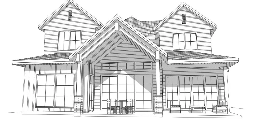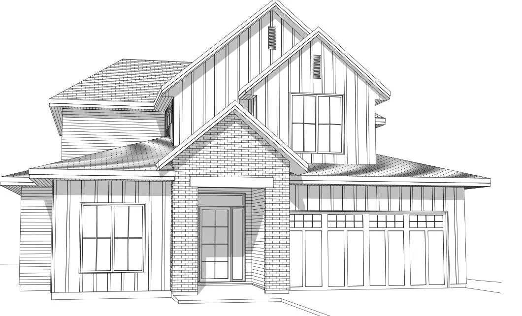 This charming two story 2,725 sq.ft. Modern Farmhouse has an ideal layout for your growing family with its master down and 3 bedrooms up and a 1st floor dedicated office space. The sleek use of horizontal and vertical lines upgrades your home immediately from first glance with the blend of brick and board and batten along with large windows and clean modernized lines. The 1st floor master will be a delightful place to relax at the end of the long days. Sliders provide access to the back patio, a perfect place for morning coffee or evening wine. Its en-suite bathroom has a large shower, a stand alone bathtub, and its walk-in closet has the newest design trend: a space for a personal stackable W/D. The living room is enunciated with a vaulted ceiling and decorative beams that carry through out onto the covered back patio that is accessed by a full wall of retracting sliders. There is a convenient standard exterior door from the dining space, making entertaining easier for the cook of the home. The large kitchen island provides additional seating and the huge is combined with the mudroom, complete with built-ins and countertop spaces. Unloading groceries will be much less of a hassle. Up the stairs are the 3 secondary bedrooms, one with an en-suite shower bathroom and larger walk-in closet, and the others share a large hallway bathroom. The family laundry room is conveniently located on this level and has a utility sink (perfect for scrubbing sports uniforms after a weekend at the ballparks).